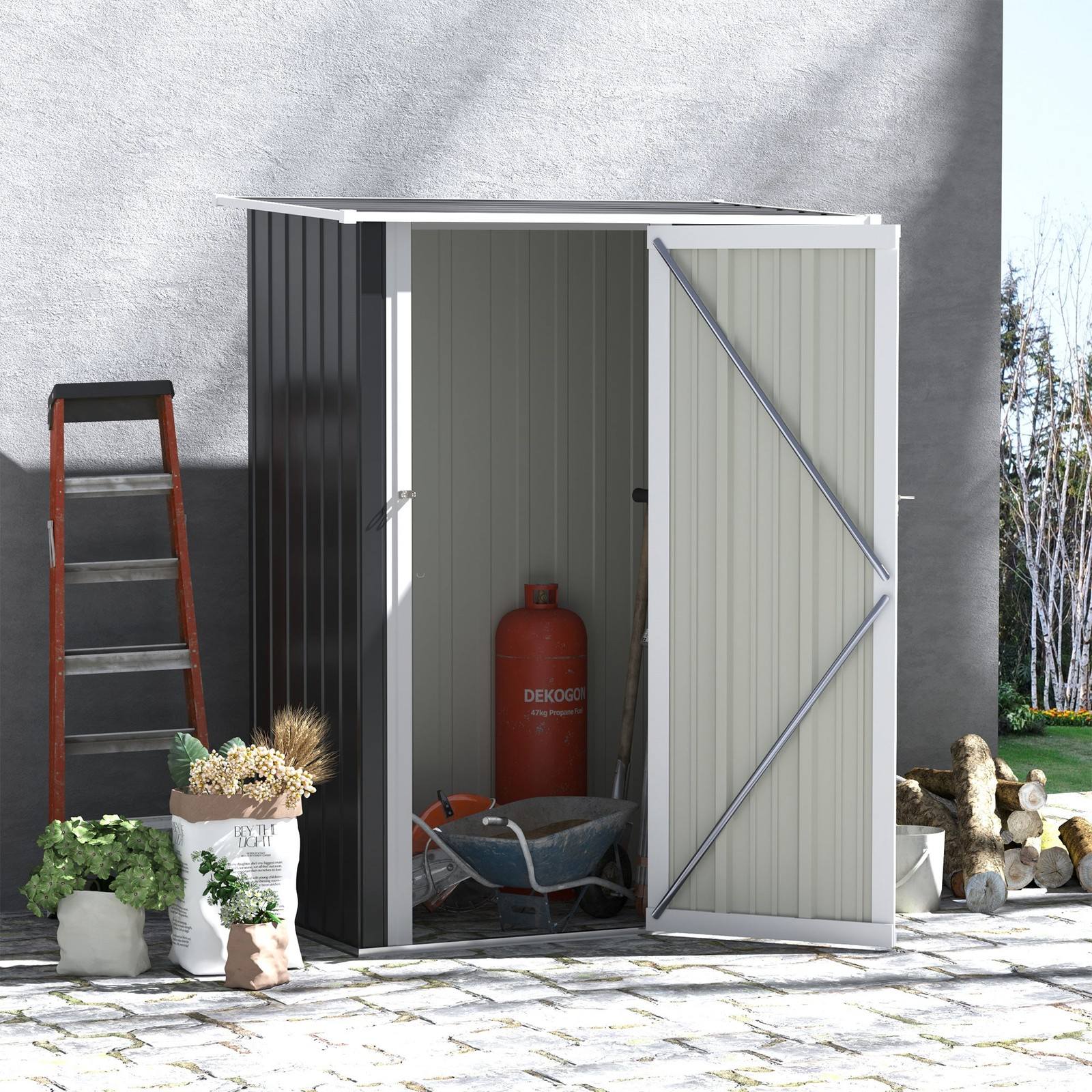 Galvanised 5 x 3' Single Door Pent Garden Store Lockable Steel Grey by Steadfast