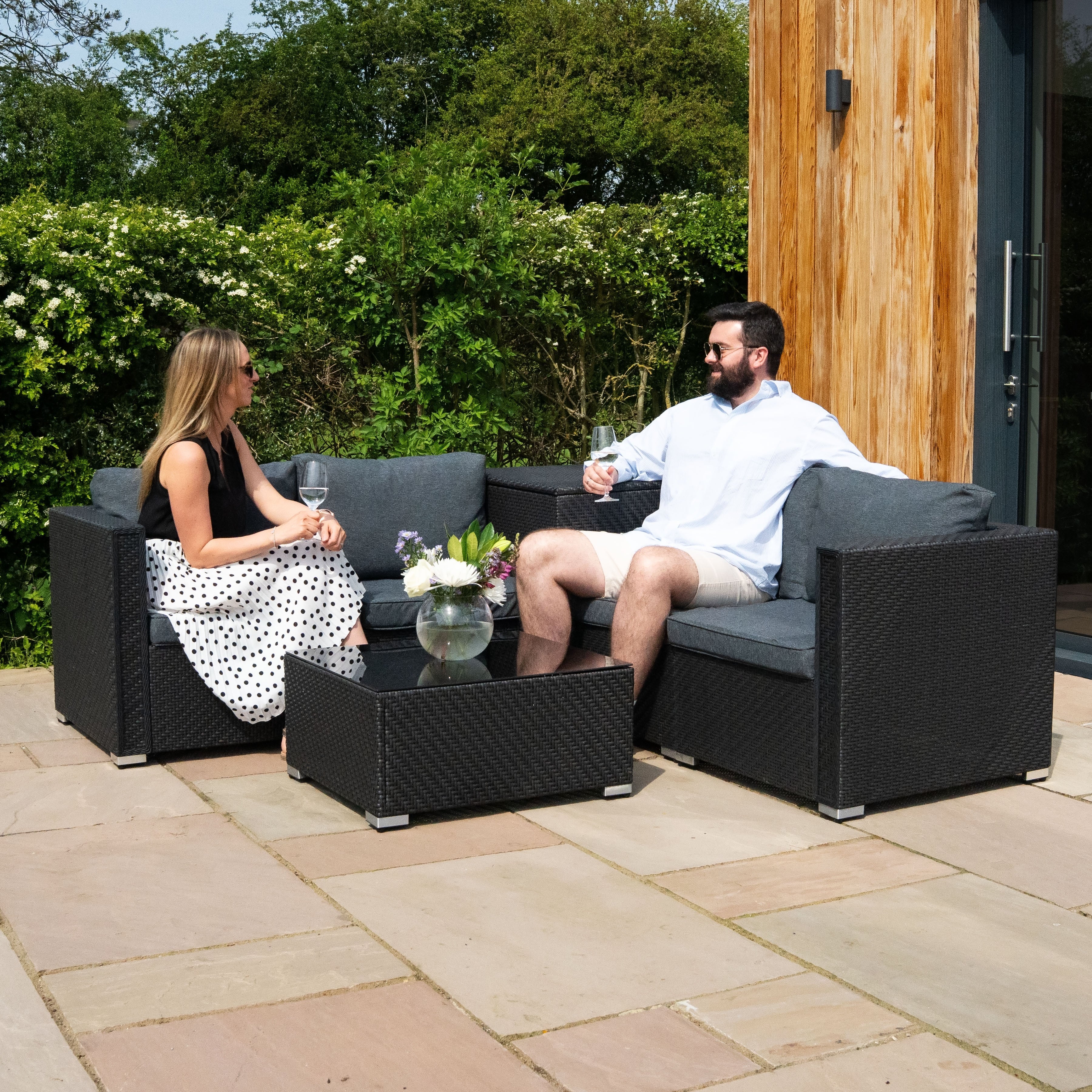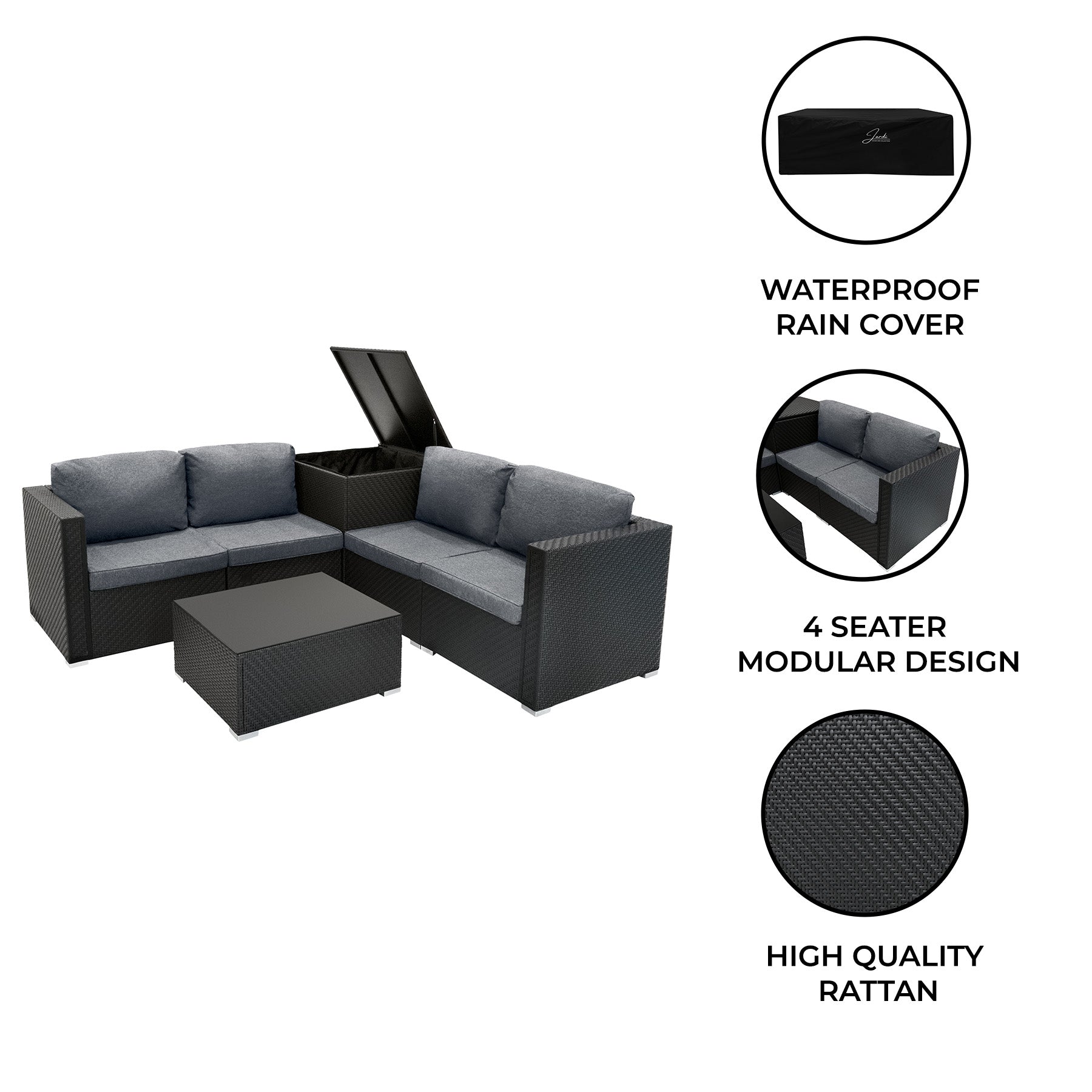 Transform your garden or patio into a versatile and inviting retreat with the rattan modular 6 piece furniture set in classic black.