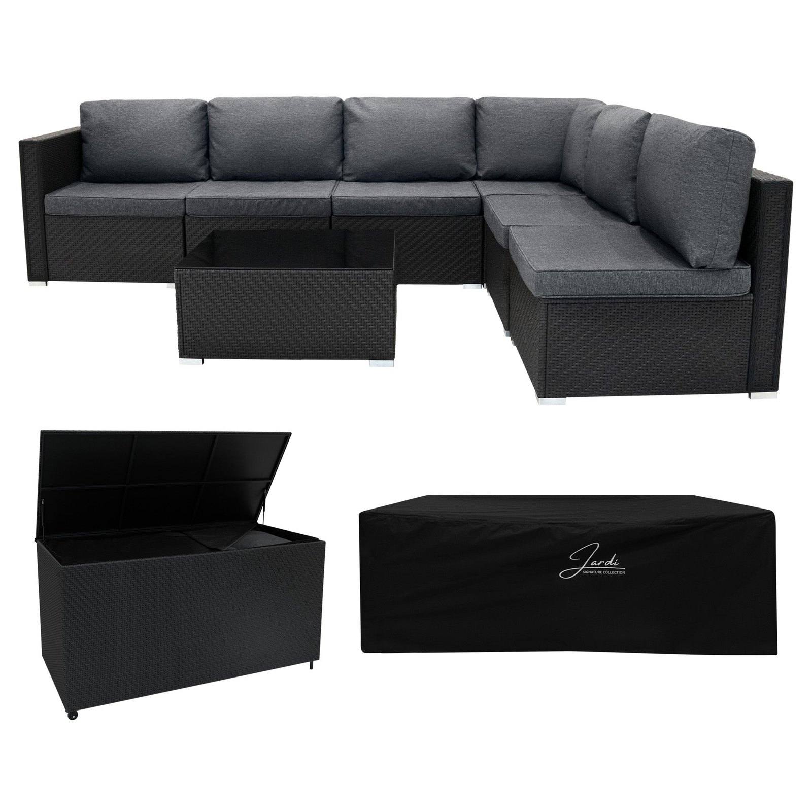 Rattan Modular 7 Piece Furniture Set & 700L Storage Box - Black
