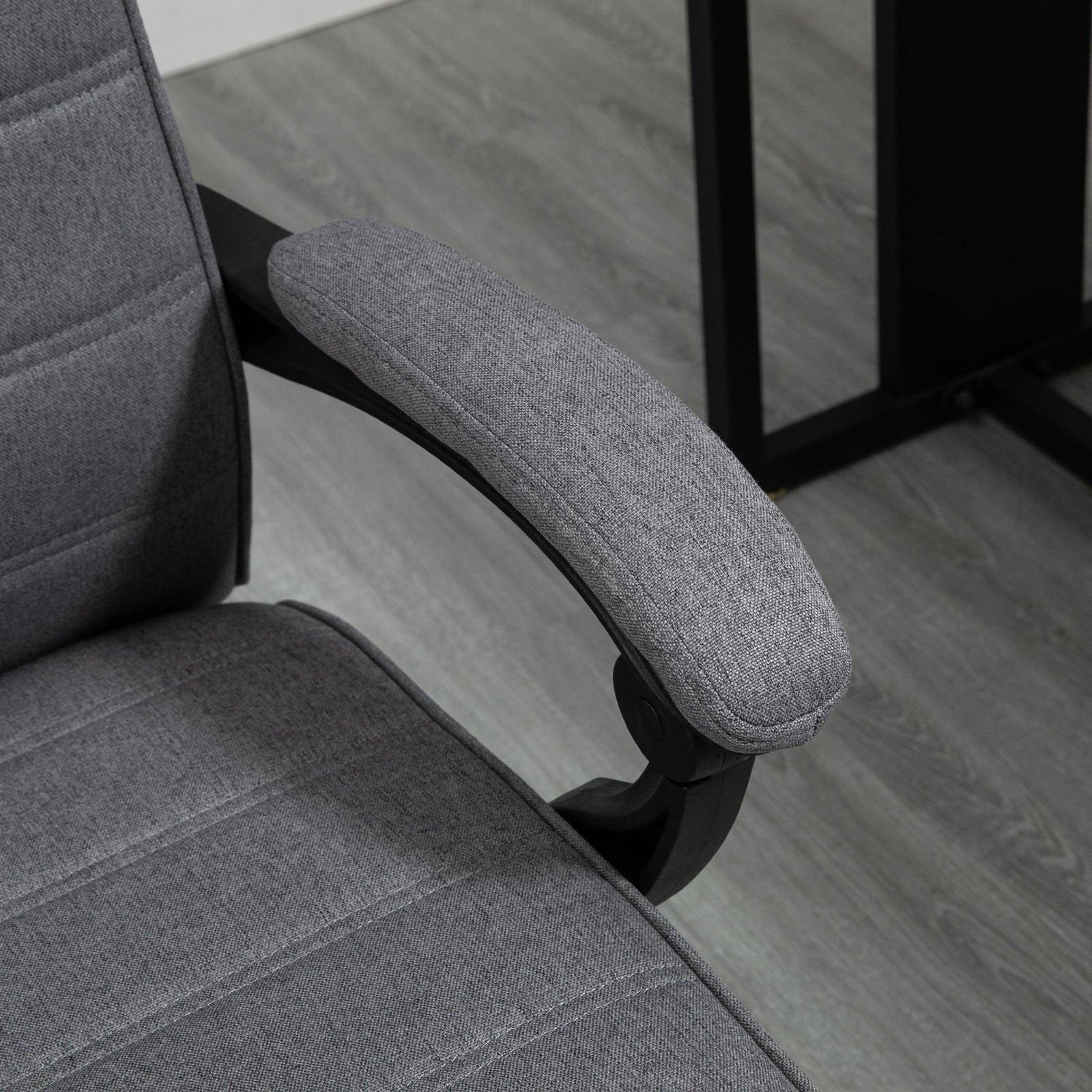 A home office chair, from Vinsetto - use this to get on with your work, wherever you are. A tall back, which is extra padded at the bottom for extra support, reclines back to a maximum 135°; paired with the manual footrest, gives a comfortable spot to rest and take time out. Other ergonomic features include the full-swivel seat, tall back and armrests. Complete with a wheeled base, this comfy chair moves around easily.